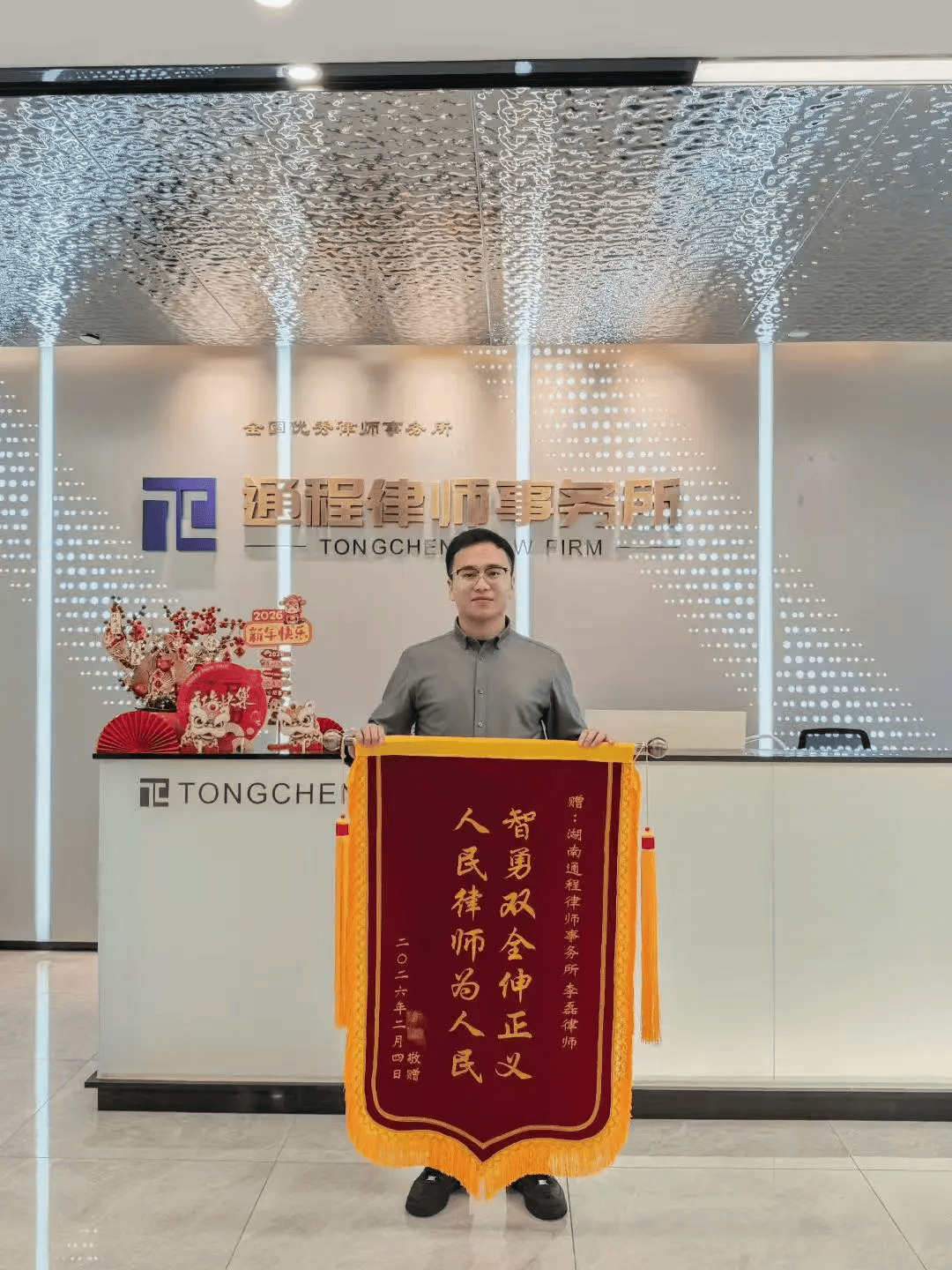 李磊律师,委托人特地送来锦旗,思正在中慢慢清晰——罪轻,曾获湖南师范大学特等分析学金。